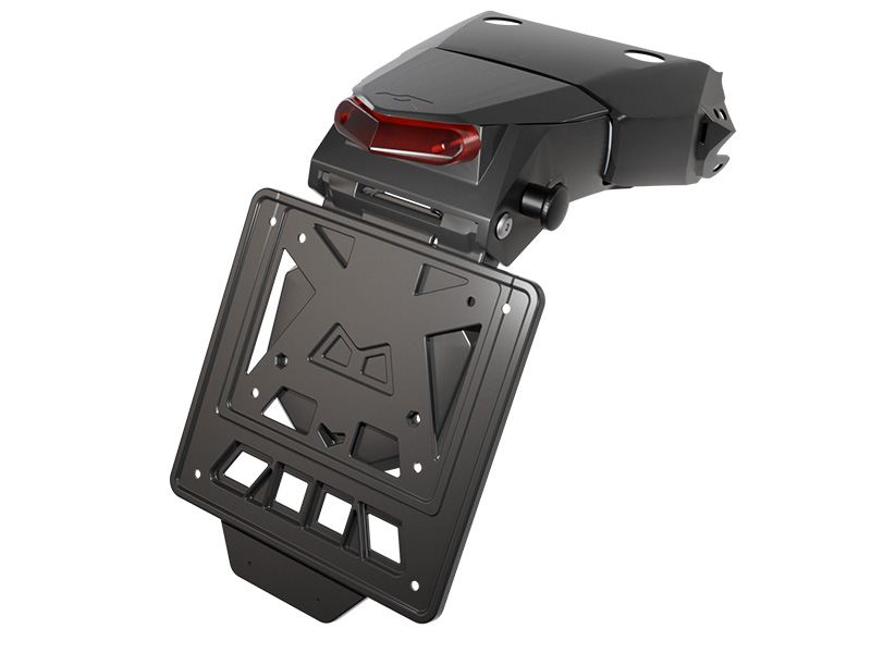 Das Integra-System ermöglicht ein einfaches Abnehmen und Montieren des Kennzeichens, ohne zusätzliche Halterungen zu lösen. Die flexible Kunststoffkonstruktion schützt Kennzeichen und Beleuchtung zuverlässig vor Beschädigungen durch Vibrationen und Stürze.