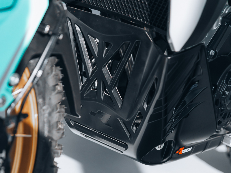 Neuer, robuster und belüfteter Motorschutz aus einem speziellen stoßfesten Technopolymer.